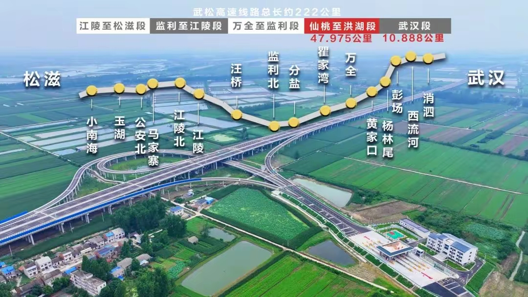 作為《湖北省綜合交通運(yùn)輸發(fā)展“十四五”規(guī)劃》重點(diǎn)項(xiàng)目,武松高速是湖北省“九縱五橫三環(huán)”高速公路網(wǎng)的關(guān)鍵聯(lián)絡(luò)線,由武漢段、仙桃至洪湖段等5段組成,總長(zhǎng)約222公里。其中,仙桃至洪湖段項(xiàng)目于2022年12月28日開工,起于仙桃西流河,止于洪湖萬全鎮(zhèn),全長(zhǎng)47.97公里(仙桃36.466+洪湖11.509公里)。